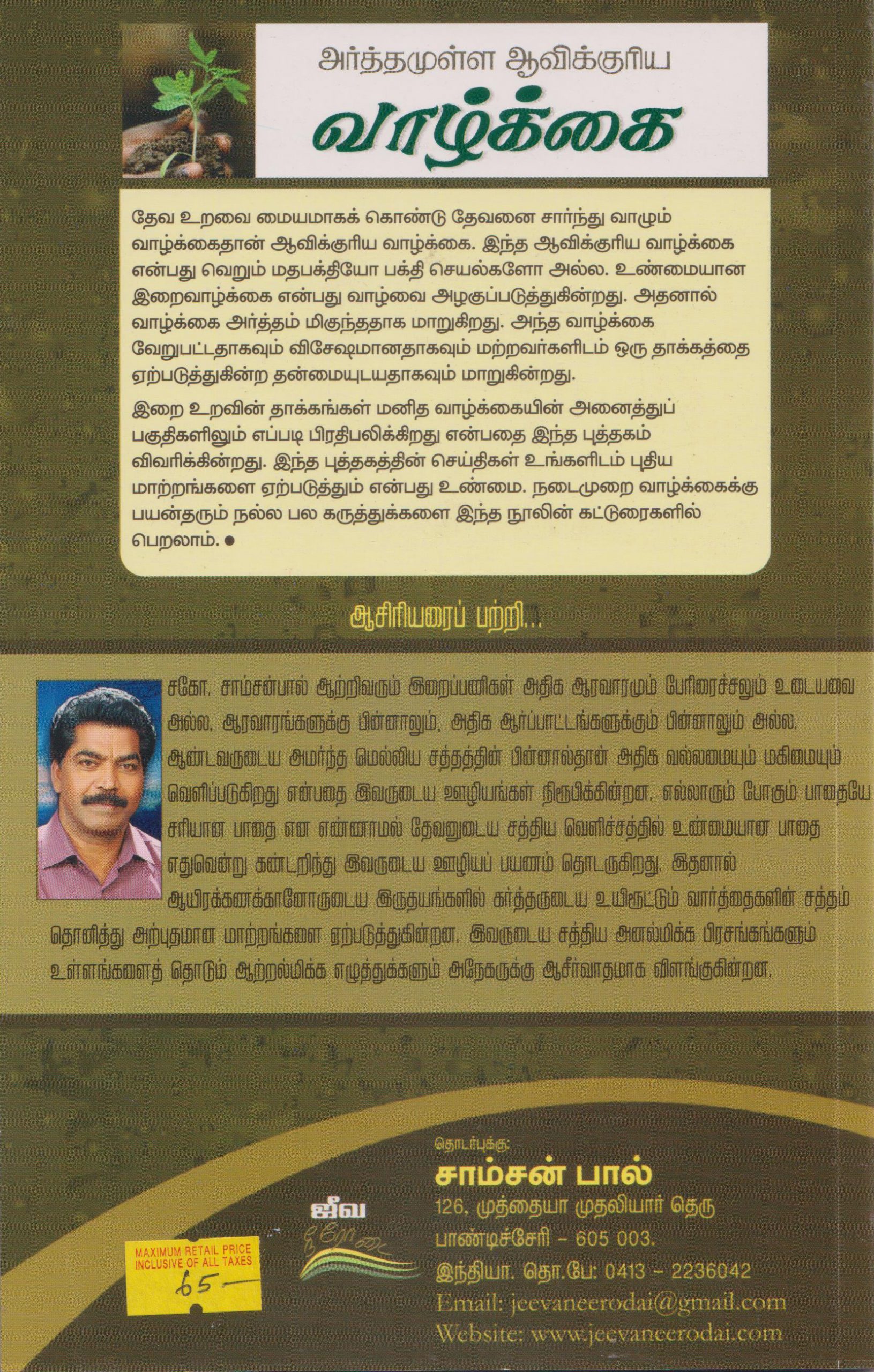 தேவ உறவை மையமாகக் கொண்டு தேவனை சார்ந்து வாழும் வாழ்க்கைதான் ஆவிக்குரிய வாழ்க்கை. இந்த ஆவிக்குரிய வாழ்க்கை என்பது வெறும் மதபக்தியோ பக்தி செயல்களோ அல்ல. உண்மையான இறைவாழ்க்கை என்பது வாழ்வை அழகுபடுத்துகின்றது. அதனால் வாழ்க்கை அர்த்தம் மிகுந்ததாக மாறுகிறது. அந்த வாழ்க்கை வேறுபட்டதாகவும் விஷேசமானதாகவும் மற்றவர்களிடம் ஒரு தாக்கத்தை ஏற்ப்படுத்துகின்ற தன்மையுடையதாகவும் மாறுகின்றது.