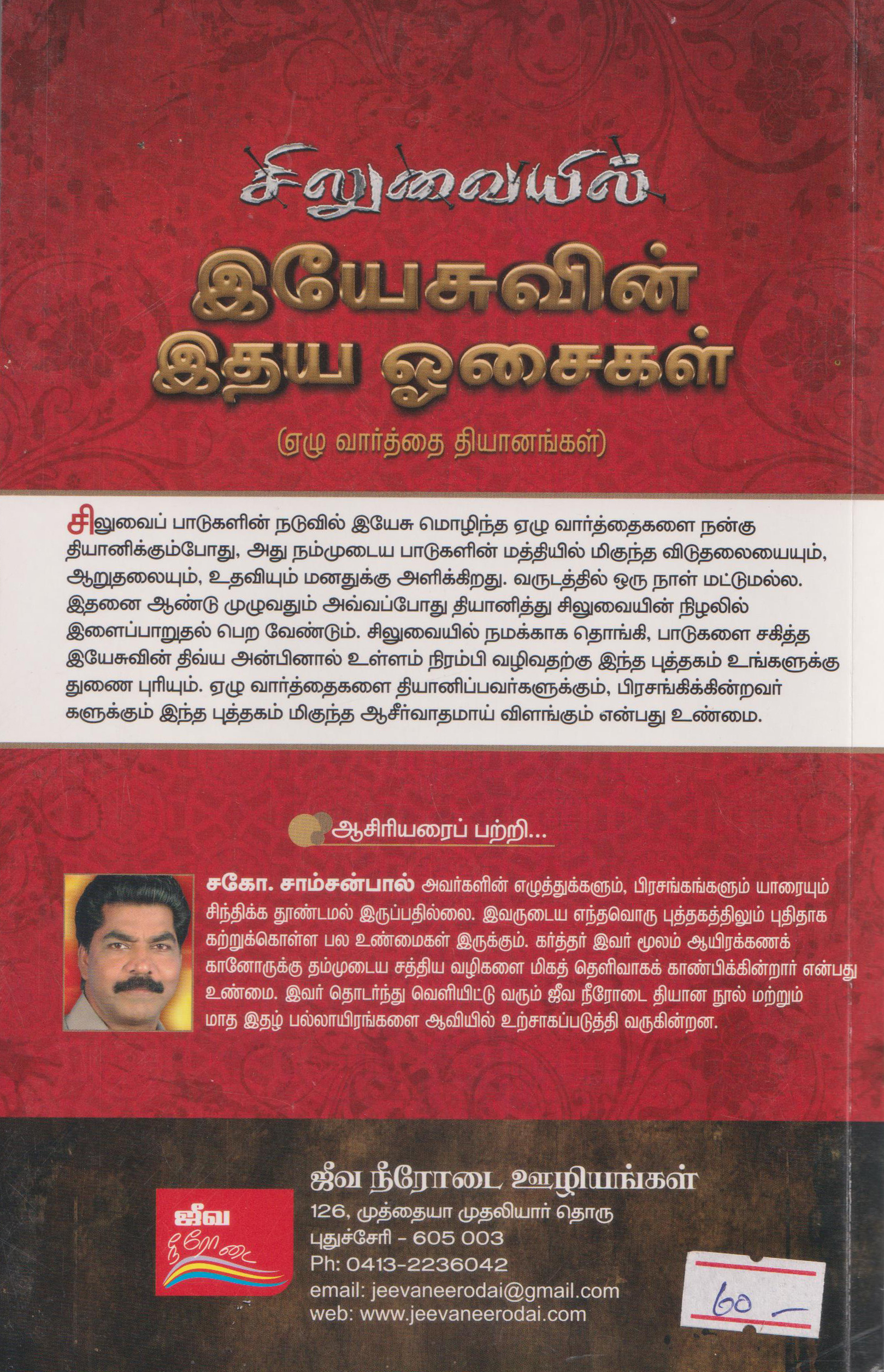 சிலுவைப் பாடுகளின் நடுவில் இயேசு மொழிந்த ஏழு வார்த்தைகளை நன்கு தியானிக்கும்போது, அது நம்முடைய பாடுகளின் மத்தியில் மிகுந்த விடுதலையையும், ஆறுதலையும், உதவியும் மனதுக்கு அளிக்கிறது. வருடத்தில் ஒரு நாள் மட்டுமல்ல. இதனை ஆண்டு முழுவதும் அவ்வப்போது தியானித்து சிலுவையின் நிழலில் இளைப்பாறுதல் பெற வேண்டும். சிலுவையில் நமக்காக தொங்கி, பாடுகளை சகித்த இயேசுவின் திவ்ய அன்பினால் உள்ளம் நிரம்பி வழிவதற்கு இந்த புத்தகம் உங்களுக்கு துணை புரியும். ஏழு வார்த்தைகளை தியானிப்பவர்களுக்கும், பிரசங்கிக்கின்றவர்களுக்கும் இந்த புத்தகம் மிகுந்த ஆசீர்வாதமாய் விளங்கும் என்பது உண்மை.