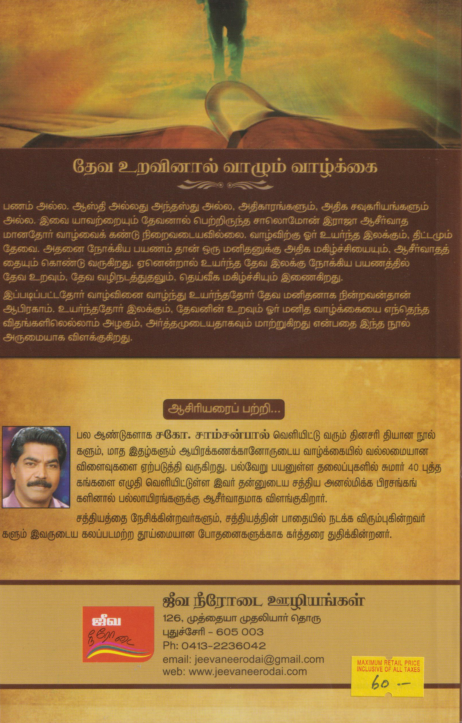 இப்படிப்பட்டதோர் வாழ்வினை வாழ்ந்து உயர்ந்ததோர் தேவ மனிதாக நின்றவன்தான் ஆபிரகாம். உயர்ந்ததோர் இலக்கும், தேவனின் உறவும் ஓர் மனித வாழ்க்கையை எந்தெந்த விதங்களிலெல்லாம் அழகும், அர்த்தமுடையதாகவும் மாற்றுகிறது என்பதை இந்த நூல் அருமையாக விளக்குகிறது.