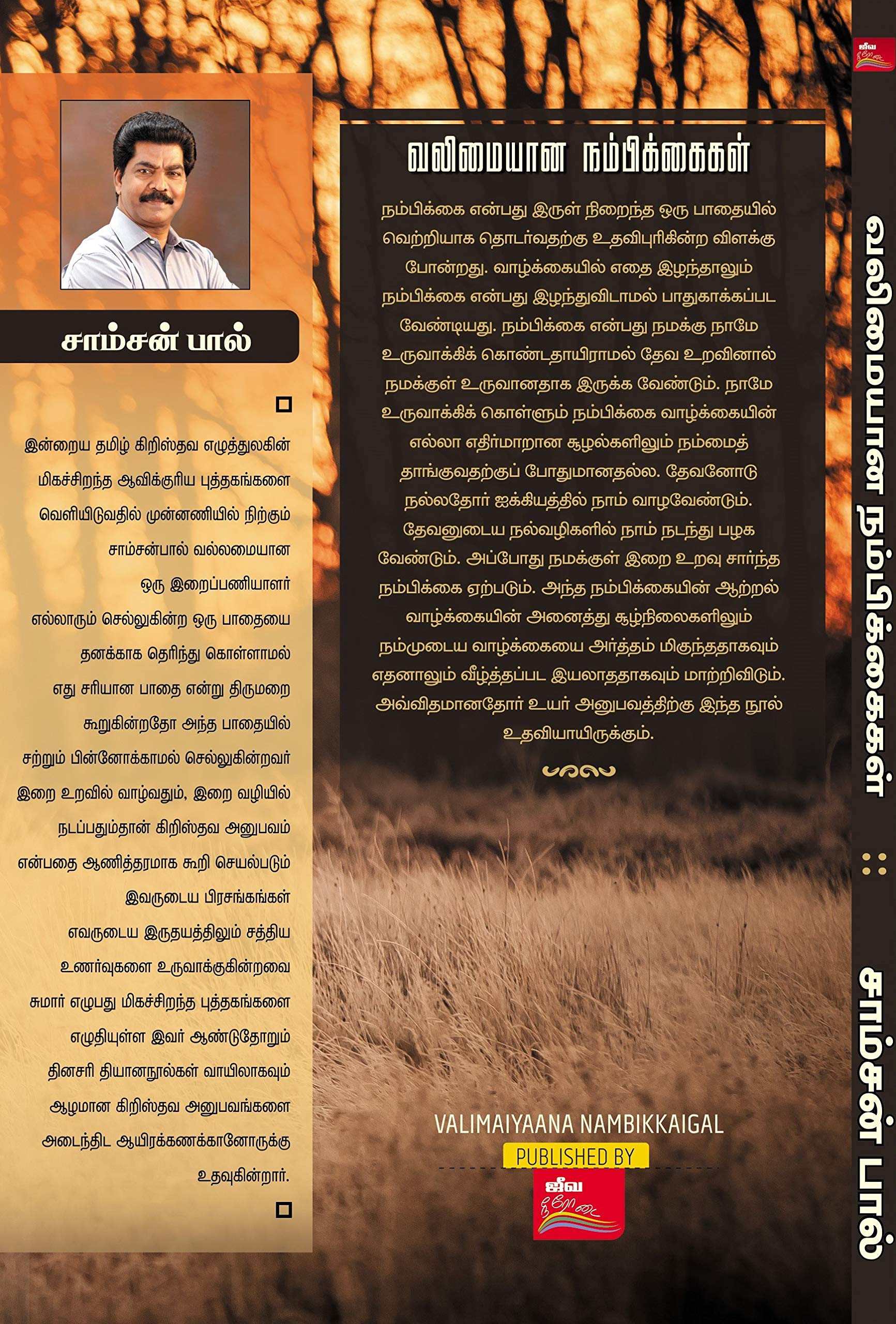 நம்பிக்கை என்பது இருள் நிறைந்த ஒரு பாதையில் வெற்றியாக தொடர்வதற்கு உதவிபுரிகின்ற விளக்கு போன்றது . வாழ்க்கையில் எதை இழந்தாலும் நம்பிக்கை என்பது இழந்துவிடாமல் பாதுகாக்கப்பட வேண்டியது. நம்பிக்கை என்பது நமக்கு நாமே உருவாக்கிக் கொண்டதாயிராமல் தேவ உறவினால் நமக்குள் உருவானதாக இருக்க வேண்டும். நாமே உருவாக்கிக் கொள்ளும் நம்பிக்கை வாழ்க்கையின் எல்லா எதிர்மாறான சூழல்களிலும் நம்மைத் தாங்குவதற்குப் போதுமானதல்ல. தேவனோடு நல்லதோர் ஐக்கியத்தில் நாம் வாழவேண்டும். தேவனோடிய நல்வழிகளில் நாம் நடந்து பழக வேண்டும். அப்போது நமக்குள் இறை உறவு சார்ந்த நம்பிக்கை ஏற்படும். அந்த நம்பிக்கையின் ஆற்றல் வாழ்க்கையின் அனைத்து சூழ்நிலைகளிலும் நம்முடைய வாழ்க்கையை அர்த்தம் மிகுந்ததாக்கும். எதனாலும் வீழ்த்தப்பட இயலாததாகவும் மாற்றிவிடும். அவ்விதமானதோர் உயர் அனுபவத்திற்கு இந்த நூல் உதவியாயிருக்கும்.